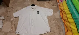 Camicia da uomo con vestibilità comoda. 78cm di lunghezza 83 cm ascella-ascella presenta due macchiette dietro come da ultima foto. - Colletto con bottoni - Logo stampato sul retro