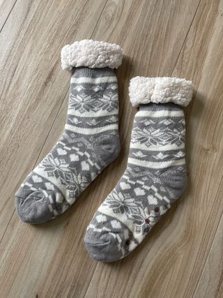 Calze morbide e calde, perfette per l'inverno. Il design a fantasia le rende un accessorio carino per stare in casa. - Fodera interna in sherpa per un calore extra. - Inserti antiscivolo sulla suola per una maggiore sicurezza. - Morbide e confortevoli da indossare.