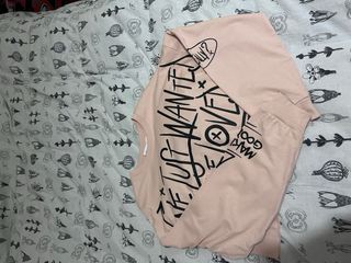 Felpa Cropped color Rosa Chiaro/albicocca con stampa nera, corta, taglia XS/S, NUOVA, mai indossata, in perfette condizioni, molto carina