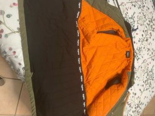 Parka Tigha in verde oliva, con un forro interior de color naranja brillante y capucha. - Cierre de cremallera. - Bolsillos frontales. - Capucha con forro negro.