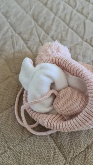 Caldo cappello invernale per bambina, perfetto per le giornate fredde. Realizzato in maglia morbida e foderato internamente in pile per un comfort extra. - Due simpatici pompon sulla parte superiore. - Orecchie imbottite per proteggere dal freddo. - Laccetti per una chiusura sicura sotto il mento.