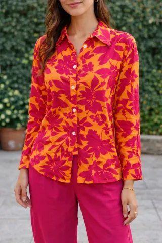 Camicia fantasia arancione e fucsia