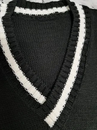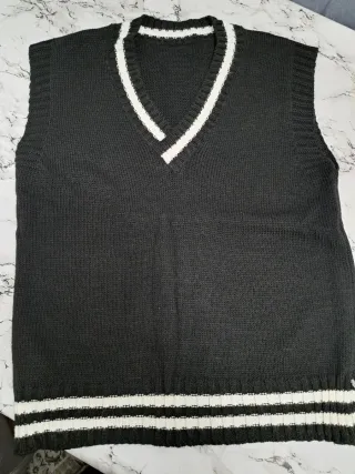 Gilet in maglia con un design classico e versatile. - Scollo a V con bordi a contrasto. - Fondo a costine con strisce. - Tessuto morbido e confortevole.
