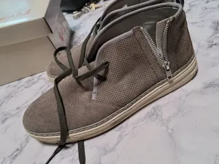 Scarponcini alla moda con dettagli curati. Internamente sta venendo via l'eccellenza. - Toma in camoscio traforato. - Zip laterale per una facile calzata. - Lacci verdi a contrasto. - Suola bicolore.