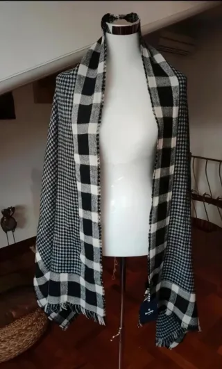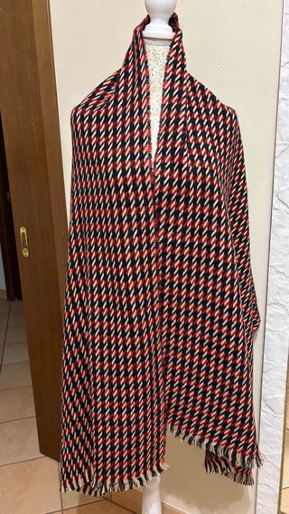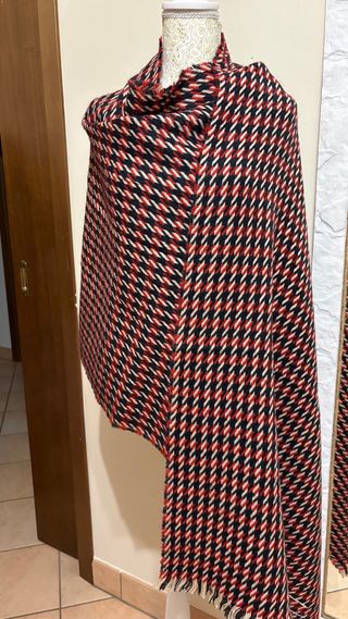 Elegante stola double-face della marca Hermitage. - Fantasia pied-de-poule su un lato. - Bordi a quadri. - Tessuto morbido e caldo.
