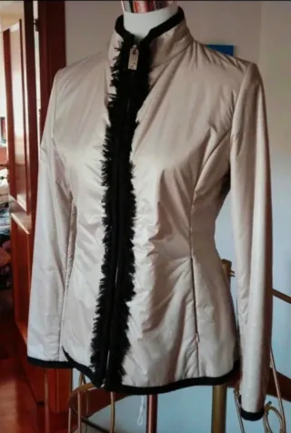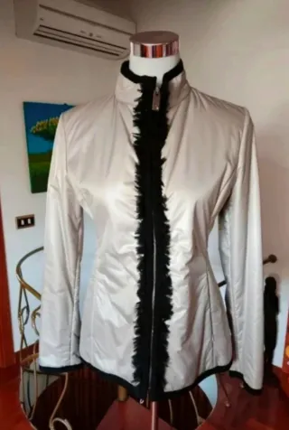 Nuova senza cartellino Elegante giacca da donna Gattinoni, un capo raffinato per ogni occasione. - Dettaglio in pelliccia nera sul davanti. - Collo alto con chiusura zip. - Finiture nere su polsini e fondo.