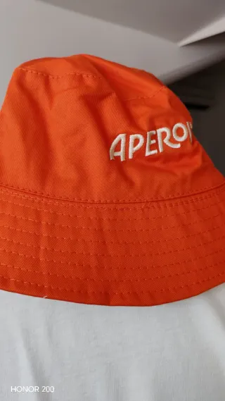 Cappello da pescatore in tessuto arancione con logo Aperol ricamato. - Design unisex. - Colore vivace.