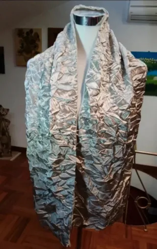 Elegante sciarpa da donna con un particolare effetto stropicciato che aggiunge texture e profondità. - Tessuto lucido e drappeggiato. - Design unico e moderno.
