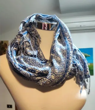 Sciarpa con un bel motivo decorativo. - Fantasia geometrica e floreale. - Orlo con frange.