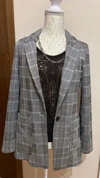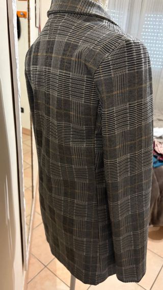 Blazer H&M con un elegante motivo a quadri. - Motivo a quadri. - Chiusura con bottone singolo. - Tasche frontali. - No Fodera interna.