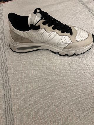 Le scarpe sono molto ben tenute in quanto sono state usate soltanto per 2 cammini. Scarpe comode e perfette anche per terreni misti. L'unico difetto è minore e di tipo estetico, poiché un'estremità di un laccio ha perso il rivestimento in plastica (questo chiaramente non ne altera l'utilizzo). Prezzo nuovo pagate 115€, prezzo leggermente trattabile