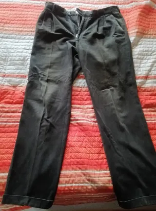 Vendo splendido paio di Pantaloni a Gamba Larga in Cotone Pesante totalmente Made in Italy . Il pantalone è perfetto con bottone e ganci in ordine e fodere perfette . Taglia 52 Italiana corrispondente ad una XL. Colore Grigio topo scuro . Ideali per una serata informale , per andare in ufficio ma anche per uscire semplicemente .