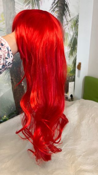 Parrucca in fibra sintetica di colore rosso brillante, ideale per completare il tuo costume da Sirenetta. Lunghezza dei capelli 71 cm. - Fibra sintetica di alta qualità. - Design lungo e liscio.