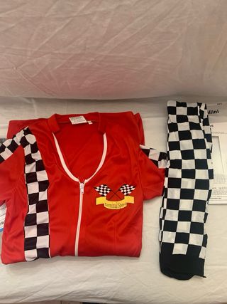 Set Ferrarista Vestito aderente rosso Collant Cavallini a scacchi acquistato per festa di carnevale alla quale non potró partecipare Vestito taglia M cinese, corrispondente a S/XS italiana Collant taglia XS/S MAI UTILIZZATI Aperti per fare le foto