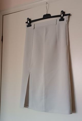 Gonna longuette,color beige chiaro con bande bianche laterali, 95% cotone e 5% elastan, tg. L ma secondo me veste M,con passanti per la cintura,chiusura con cerniera e finte tasche posteriori, lunghezza circa 64 cm, vita circa 40 cm Unico piccolo difetto di fabbricazione, un minuscola macchia bianca dietro (v foto, grande quanto un chicco di riso), praticamente impossibile da vedere soprattutto quando la si indossa.✅ NO SPEDIZIONI CON INPOST /MONDIAL RELAY✅ I miei articoli vengono lavati e igienizzati,fatte foto e video prima di spedire. Info gonne #lucrezialaviniapant #Falda midi de algodón con bandas laterales blancas, talla M-L