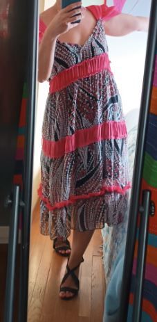 Abito lungo sotto al ginocchio, stile figlia dei fiori, taglia XL , 10% cotone e 90% poliestere, scollatura a V e spalline volant.Materiale in trasparenza dell'abito con fantasia a fiorellini e sottoveste nera cucita internamente.Ho fatto molte foto, guardale tutte per vedere come veste. ✅ I miei articoli vengono lavati e igienizzati, fatte foto e video prima di spedire✅ NO SPEDIZIONI CON INPOST /MONDIAL RELAY #Talla de vestido largo estilo niña flor XL. Info articoli come questo clicca #lucrezialaviniasu