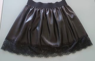 Minigonna fintapelle nera elastica pizzo Tg.S-M
