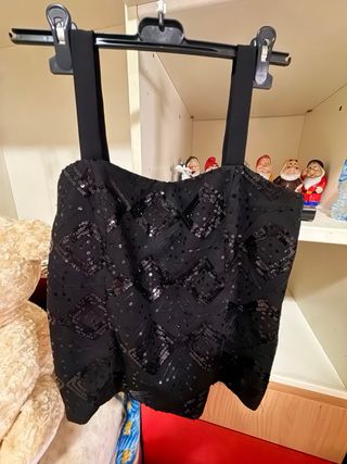 Elegante top da cerimonia con paillettes. - Design a rombi con paillettes. - Spalline sottili. Utilizzato solo una volta