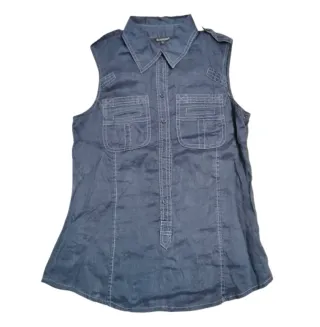 Camicetta smanicata in denim, un capo versatile e alla moda. - Tessuto denim resistente. - Design smanicato. - Dettagli con cuciture a contrasto.