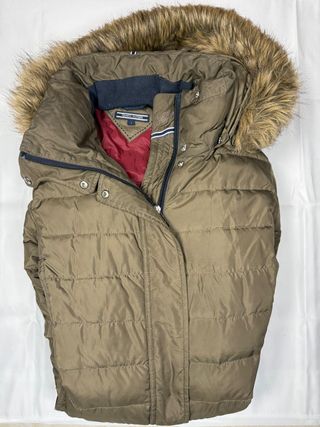 Giubbino Tommy Hilfiger in perfette condizioni. - Cappuccio con pelliccia sintetica. - Fodera interna rossa. - Chiusura con zip e bottoni a pressione.