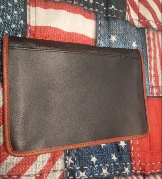 Elegante portadocumenti in similpelle verde, perfetto per organizzare i tuoi fogli. - Chiusura a linguetta in ecopelle color cuoio. - Dettagli con cuciture a vista. - Logo inciso sulla linguetta. Porta documenti verde con scomparto interno Nuovo mai utilizzato