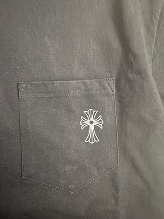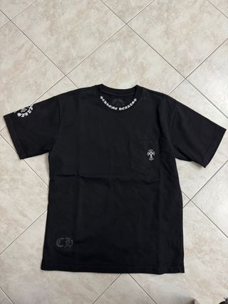 Maglietta Chrome Hearts nera. - Logo Chrome Hearts sul colletto. - Taschino sul petto con croce. - Logo CH sul fondo. - Dettagli con croci sulle maniche.