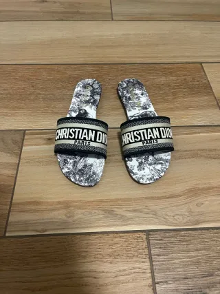 Ciabatte Christian Dior con un design unico. - Fantasia floreale e paesaggistica. - Logo Christian Dior Paris sulla fascia. Ciabatte comode per donna, mai usate ancora imbustate. Per altre foto o informazioni basta contattarmi.