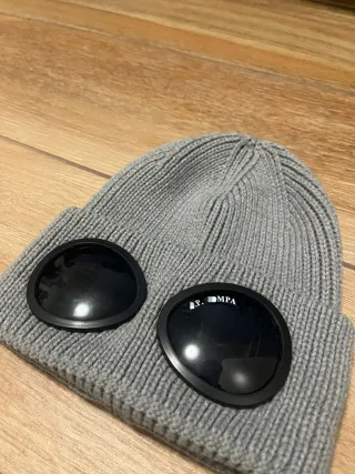Berretto in maglia grigio con iconiche lenti. Mai usato ancora come nuovo. - Design a coste. - Dettaglio con lenti applicate sul davanti. Per altre informazioni o foto contattarmi.