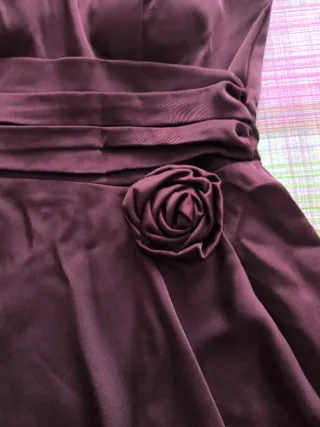Elegante vestito da cerimonia. - Tessuto satinato. - Dettaglio floreale sul davanti. - Spalline regolabili. - zip sul dietro. Con coprispalle abbinato, maniche a tre quarti