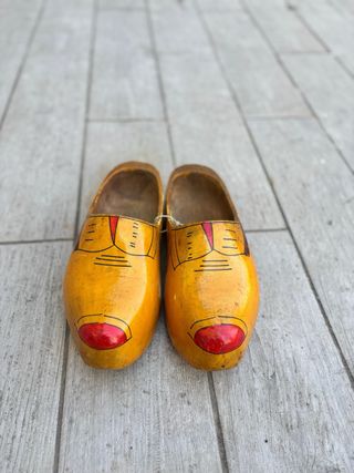 Coppia di zoccoli tradizionali olandesi. - Decorati con colori vivaci. - Realizzati in legno.