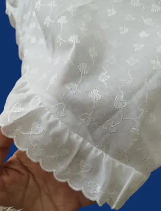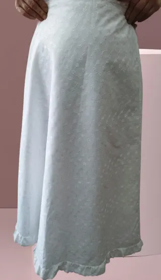 Gonna lunga in battista con un delicato motivo floreale ricamato. Disegno a cuoricini. - Taglio svasato a ruota. - Orlo con volant.