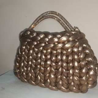 Borsa a mano con un design unico e accattivante, realizzata con un materiale che dona un tocco di luce. - Manici scintillanti. - Texture intrecciata spessa.