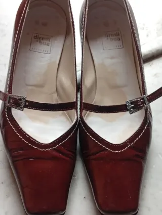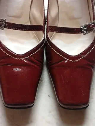 Eleganti scarpe da donna in vernice. - Dettaglio con fibbia decorativa. - Cuciture a contrasto sul bordo - Tacco 5cm