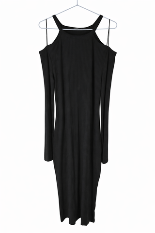 Abito nero Terranova taglia XL Modello midi aderente con dettaglio spalle scoperte Tessuto elasticizzato In ottime condizioni Ideale per serate o occasioni casual chic Prezzo già ribassato per realizzo veloce Disponibile spedizione