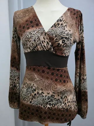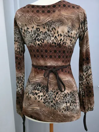 Maglia da donna maniche lunghe - Scollo a V incrociato - Maniche lunghe con chiusura laccio - Fascia in vita con laccio per esaltare la vita - Tessuto morbido