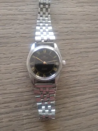 Elegante orologio Pryngeps da donna con movimento 17 rubis Incabloc. - Quadrante nero con indici romani. - Datario a ore 3. - Cassa e bracciale in acciaio Ben tenuto e funzionante con carica manuale meccanica