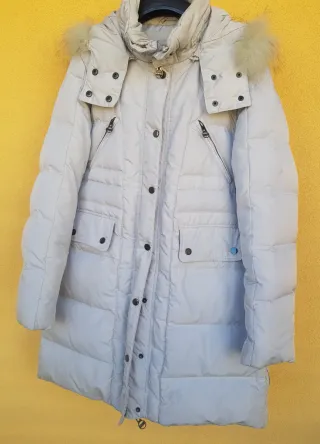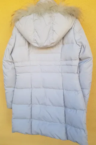 Elegante piumino lungo, perfetto per le giornate più fredde. Il cappuccio è rifinito con una morbida pelliccia sintetica staccabile - Chiusura centrale con automatici e sotto zip per maggiore protezione e calore. - 4 Tasche con zip e automatici - Dettagli con bottoni sul cappuccio. - Maniche con elastico interno per mantenere il calore - Tasca interna 8