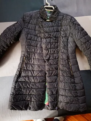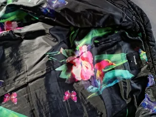 Elegante cappotto Desigual con una particolare fantasia. - Chiusura asimmetrica con zip. - Collo medio - Maniche lunghe. - Motivo floreale e astratto. - Fodera interna colorata - altezza articolo cm 80