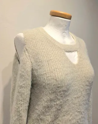 Maglione lungo con un design moderno e un tocco di morbidezza. - Scollo triangolo - Maniche lunghe con spalle scoperte - Spacco centrale sul fondo.