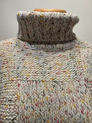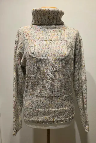 Maglione dolcevita con un design patchwork unico. Il filato presenta una trama variegata che crea un effetto mélange. - Collo alto a costine. - Maniche lunghe. - Motivo a trecce centrale. Privo di cartellino misura e materiale