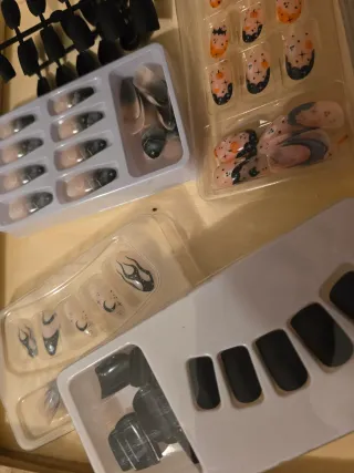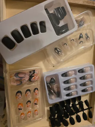 Set di unghie finte con diversi design e accessori inclusi. Perfetto per personalizzare il tuo look. - Unghie finte con decorazioni a tema. - Vari accessori