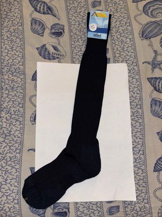Calze Nuove (Mai Aperte) Lunghe Fino Al Ginocchio,Con Imbottitura Ai Piedi Delle Calze Per Scouting/Sport Invernali/Mezze Stagioni In Montagna,UNISEX,Originali Marca:”deBert” PRODOTTE INTERAMENTE IN ITALIA(vedi foto retro cartellino),Taglia n’ 40-42,colore:A TINTA UNITA NERO,TESSUTO BELLO ELASTICO,SENZA DIFETTI,Fornitore Ufficiale Associazione Italiana Guide e Scouts d’Europa (scritto davanti in basso a destra del cartellino). Misure -lunghezza bordo elastico-inizio tallone:43,5/44 cm -lunghezza piede calze(punta-tallone):27 cm -larghezza massima piede calze:10 cm Tessuto:80% COTONE,20% POLIAMMIDE Vendo a €15 non trattabili