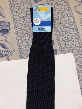 2 Paia di Calze Nuove(ancora con il blocca punte in metallo originale del produttore),Lunghe fino al ginocchio circa,Uguali,Da Uomo,Originali Marca “deBert”MADE IN ITALY,Taglia II=n’ 42-44,SENZA NESSUN DIFETTO,colore:NERO(a me sembra nero ma potrebbe essere un blu scurissimo)CON COSTE SOTTILI VERTICALI AZZURRO CHIARO,CON PUNTA E TALLONE IN TESSUTO RINFORZATO,Tessuto Bello Elastico. Misure: -lunghezza bordo elastico-inizio tallone:38 cm -lunghezza piede calze(punta-tallone):24 cm Tessuto: 68% Cotone 30% Polyamide(nylon) 2% Elastan(lycra) Vendo 2 paia di calze Nuove lunghe uguali a €10 non trattabili,ritiro a Erbusco(BS),o spedisco