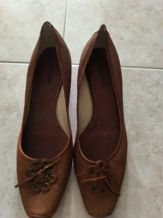 Eleganti scarpe da donna in tonalità marrone dorato, perfette per completare ogni outfit. - Materiale in pelle. - Dettaglio floreale decorativo sulla punta. - Chiusura con lacci sottili.