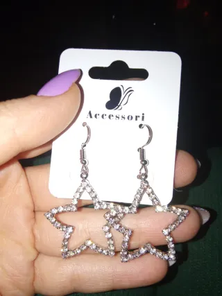 Eleganti orecchini a forma di stella, perfetti per aggiungere un tocco di brillantezza al tuo look. - Design a stella. - Decorati con strass scintillanti. - Montatura in metallo color argento.