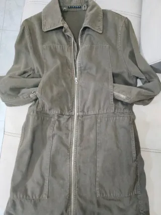 Splendido giaccone Sisley color verde fango/oliva scuro, stile militare/utility. Un pezzo vintage di altissima qualità, interamente Made in Italy. Materiale esterno: 100% Cotone robusto e resistente. Interno: Calda fodera in "sherpa" (effetto peluche/lana di pecora) removibile tramite bottoni, che lo rende perfetto sia per l'inverno che per le mezze stagioni. Chiusura frontale con zip a doppio cursore, tasche cargo piatte sul davanti per un look minimal e pulito, e iconiche zip sui polsini che aggiungono un tocco grintoso. Taglia: M (vestibilità regolare, leggermente sfiancata sul retro per una bella silhouette).