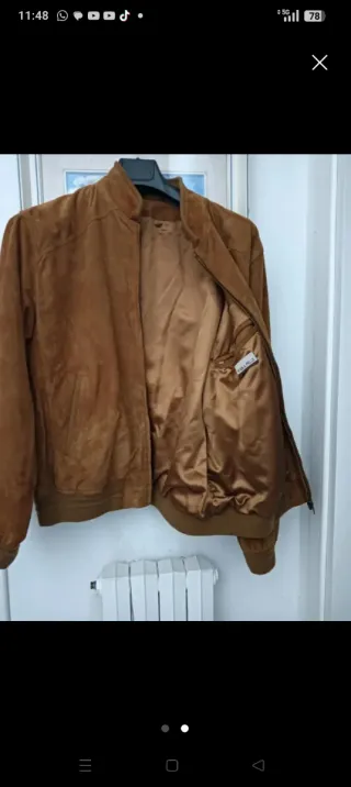 Giubbotto in pelle scamosciata color marrone./ Senape Un capo versatile e di tendenzaFodera in raso - Materiale: Pelle scamosciata. - Made in Italy.