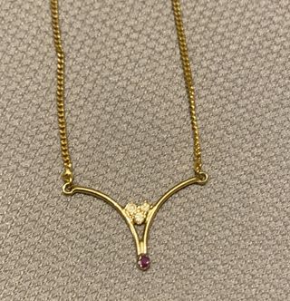 Collana girocollo dorata con ciondolo a V Collana girocollo dorata con ciondolo a V e pietre sintetiche 240509e16