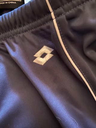 Tuta sportiva Lotto unisex Italian Sport Design Bicolore pantalone blu giacca celeste con righe bianche Tuta Lotto indossata due volte, vestibilità comoda. Taglia I=50 USA=XXL