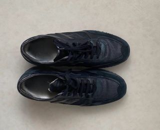 Sneakers Armani Exchange in tessuto blu con dettagli beige. - Tomaia in tessuto resistente. - Suola in gomma. - Logo Armani Exchange sul lato. Volevo specificare che una scarpa da un lato è leggermente scollata basta mettere un po’ di colla ed è fatta.